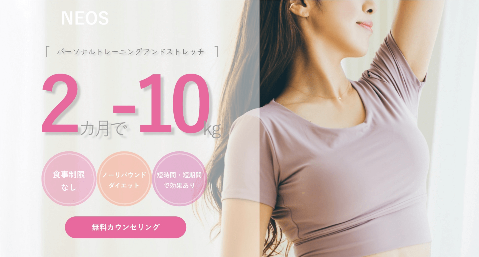 女性向けパーソナルトレーニングのランディングページ。 ターゲットが好みの色・文章構成・デザインを提案。